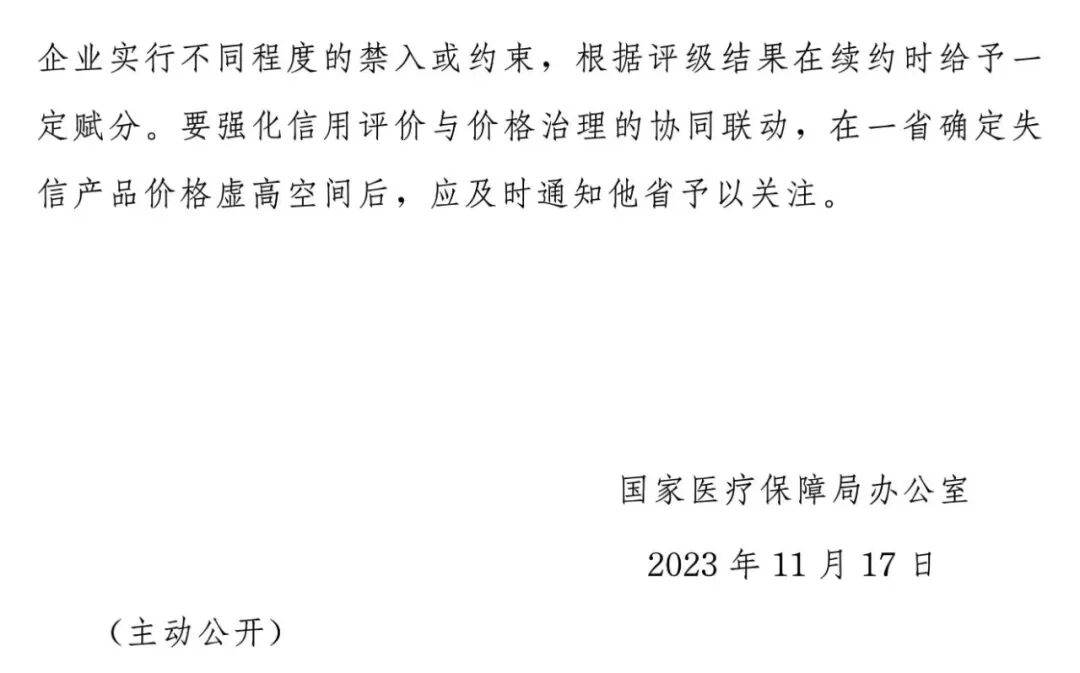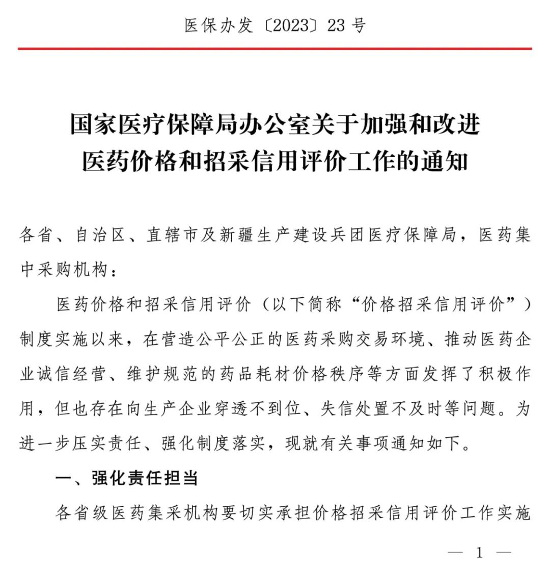 11月23日,国家医保局发布《关于加强和改进医药价格和招采信用评价工作的通知》(完整附文末)。