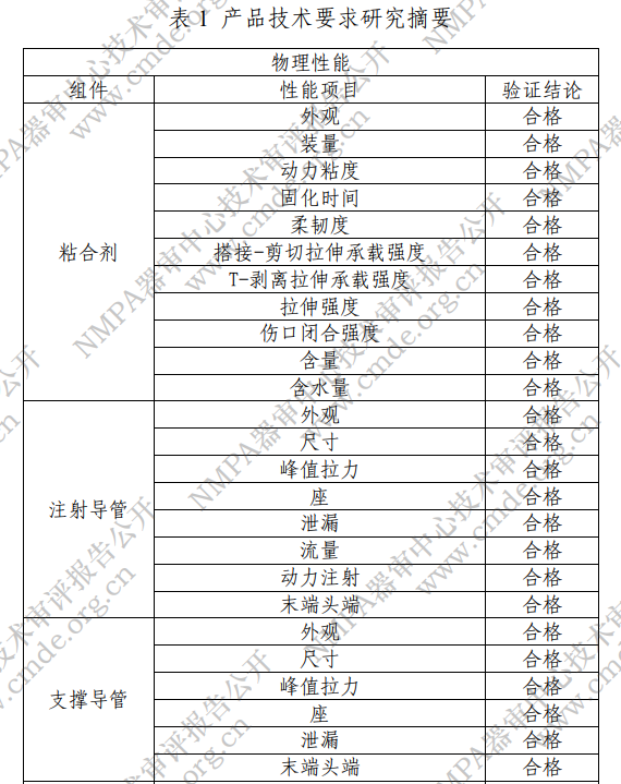 除产品技术要求中有关项目外,申请人还提供了聚合机理研究,提供了在三种不同极性溶剂中开展体外固化前、固化中、固化后的化学表征研究、化学可浸提物研究、包装材料相容性研究、粘合剂降解性能研究、模拟使用研究、各级降解产物降解代谢情况等相关资料。相关资料显示产品符合设计输入要求。